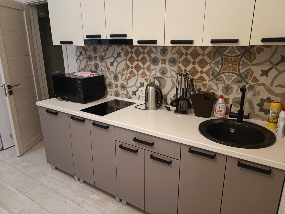 — оборудованная кухня со всей бытовой техникой и посудой,