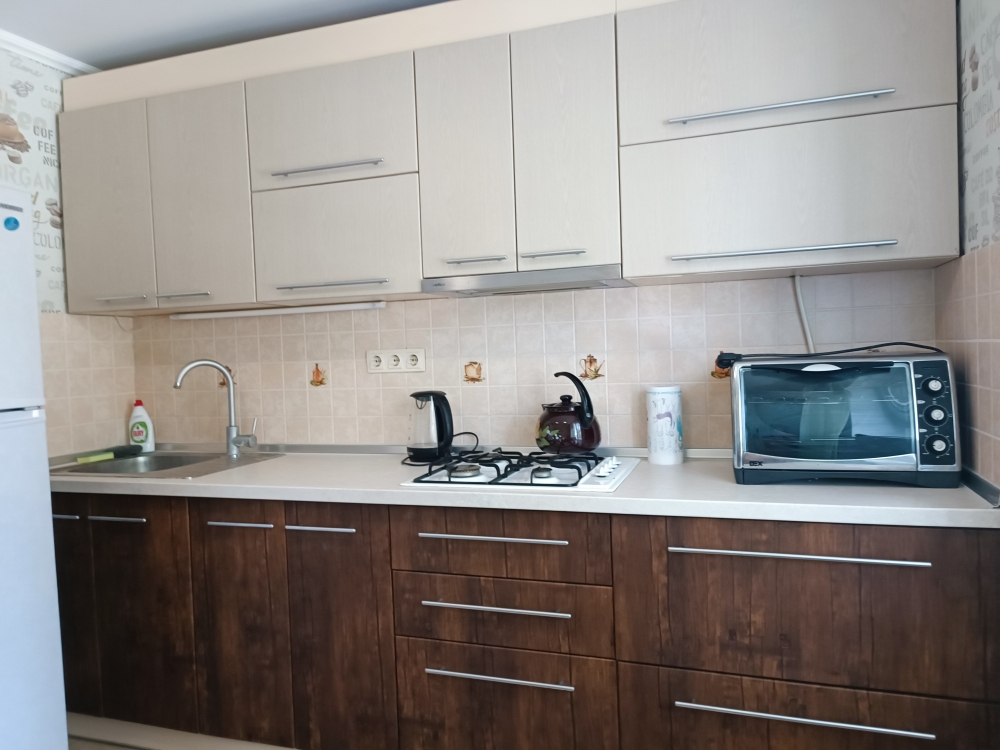 Двух комнатная квартира по ул. Перекопской сдается в летний период отдыхающим в Евпатории. Две раздельные просторные комнаты, кухня, душ, два сан узла, лоджия.