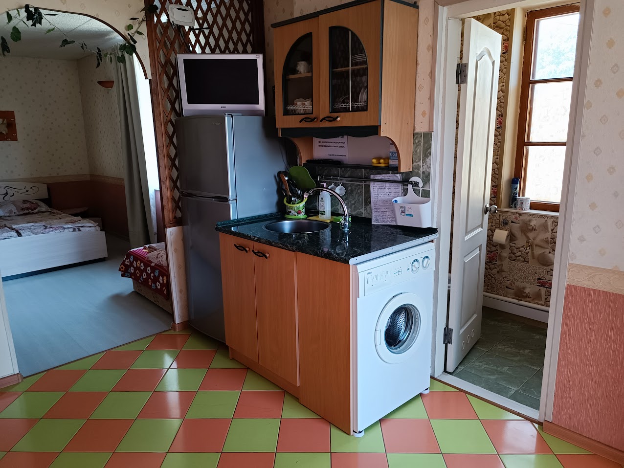 — первый этаж состоит из одной комнаты и кухни, отдельный душ и туалет,